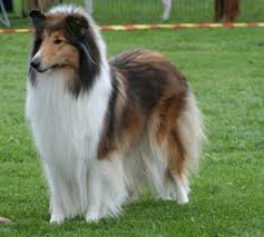 The four recognized colors are "Sable and White," "Tri-color," "Blue Merle" and "White." There is no preference among them. The "Sable and White" is predominantly sable (a fawn sable color of varying shades from light gold to dark mahogany) with white markings usually on the chest, neck, legs, feet and the tip of the tail. A blaze may appear on the foreface or backskull or both. The "Tri-color" is predominantly black, carrying white markings as in a "Sable and White" and has tan shadings on and about the head and legs. The "Blue Merle" is a mottled or "marbled" color predominantly blue-grey and black with white markings as in the "Sable and White" and usually has tan shadings as in the "Tri-color." The "White" is predominantly white, preferably with sable, tri-color or blue merle markings.